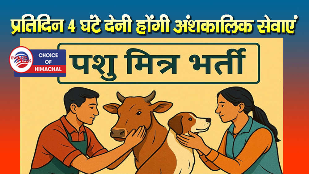 चंबा में पशु मित्रों के 39 पदों पर भर्ती, इच्छुक युवा 5 फरवरी तक करें आवेदन
