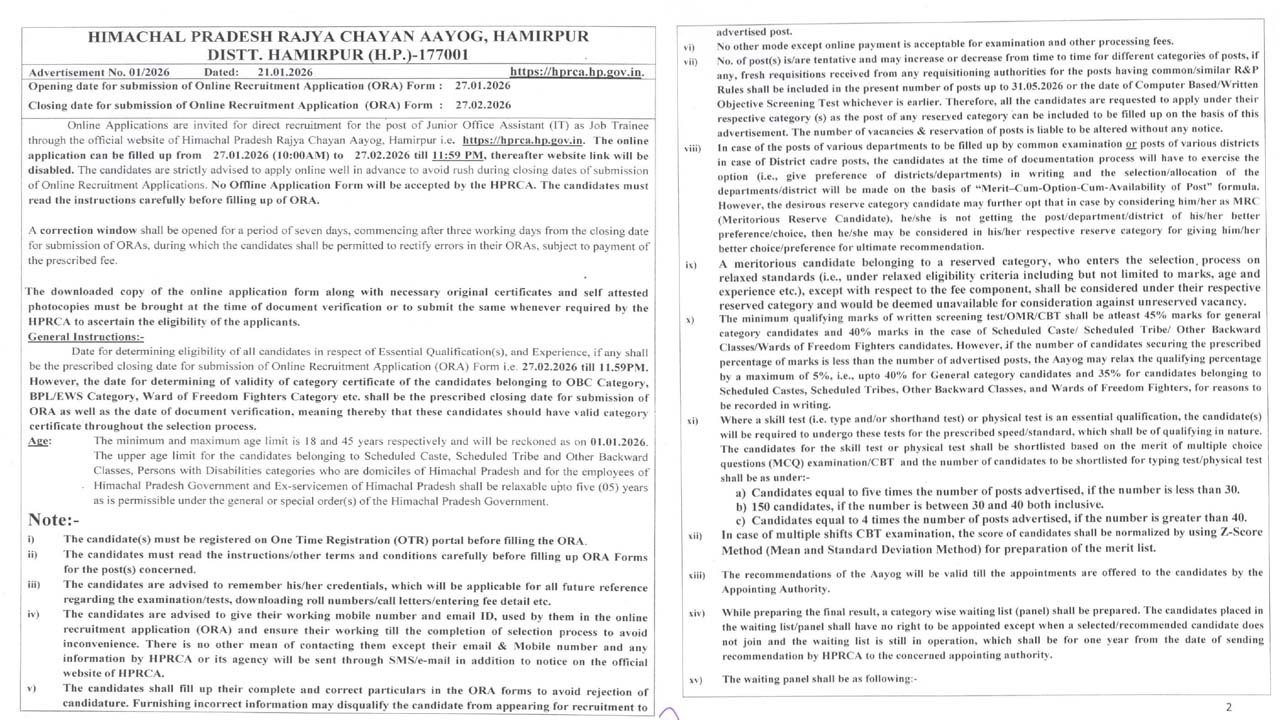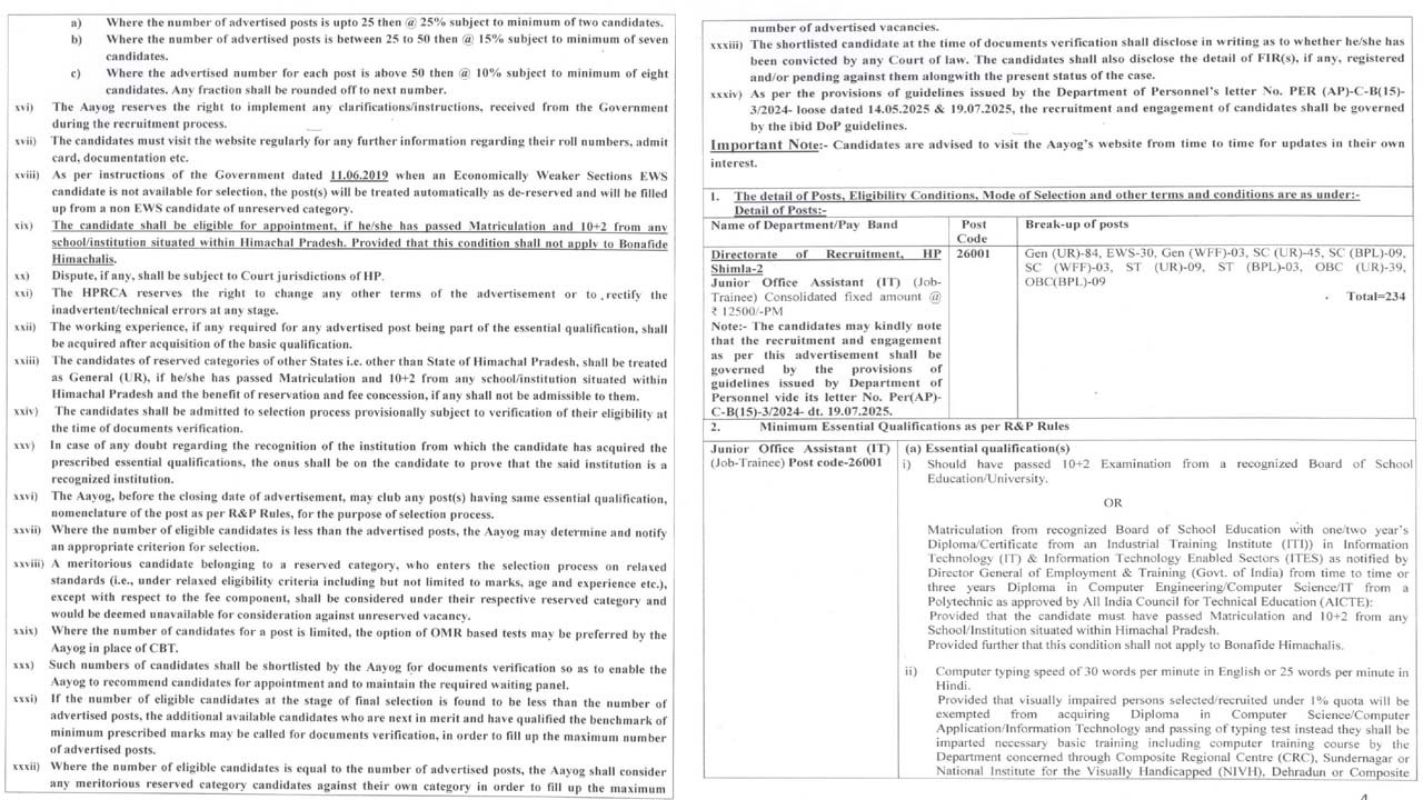 हिमाचल में JOA IT के 234 पदों पर भर्ती, आवेदन शुरू-ये है लास्ट डेट