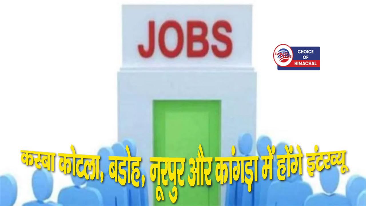 साक्षात्कार 15 जनवरी को उप रोजगार कार्यालय कस्बा कोटला, 16 जनवरी उप रोजगार कार्यालय बडोह, 17 जनवरी को क्षेत्रीय रोज़गार कार्यालय नूरपुर और 19 जनवरी 2026 को उप रोजगार कार्यालय कांगड़ा में सुबह 11 बजे से होंगे।
