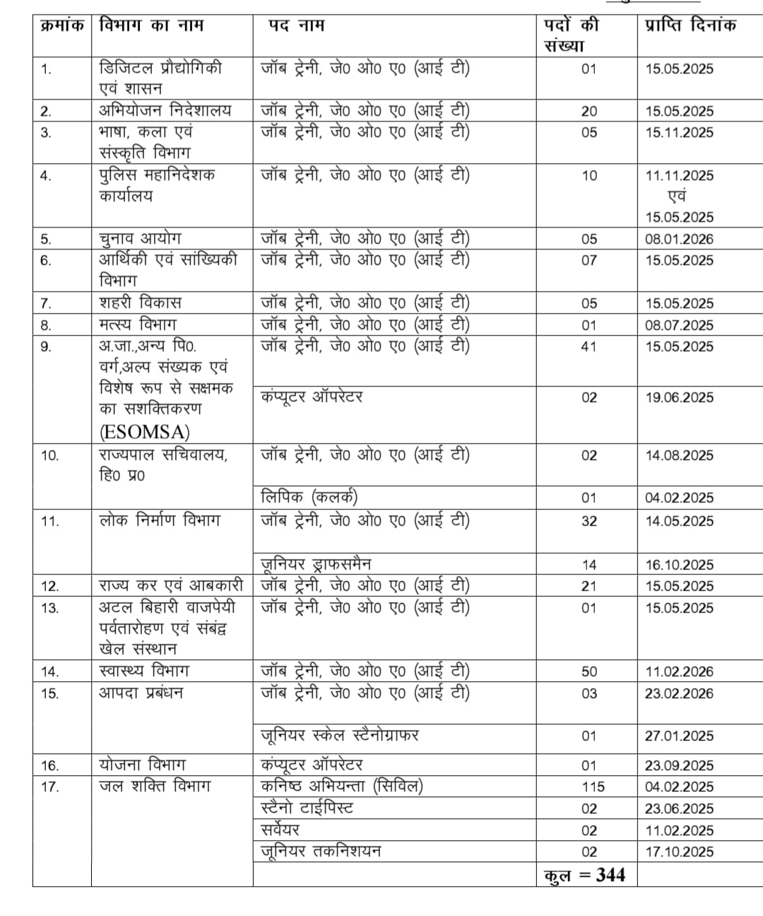 शिमला। हिमाचल प्रदेश में जेओए (आईटी) जॉब ट्रेनी के 204, कनिष्ठ अभियंता सिविल के 115 पदों सहित 344 पदों पर भर्ती होगी। भर्ती निदेशालय के पास विभिन्न विभागों से मांग पत्र पहुंच गया है। इन पदों का विज्ञापन होना शेष है।