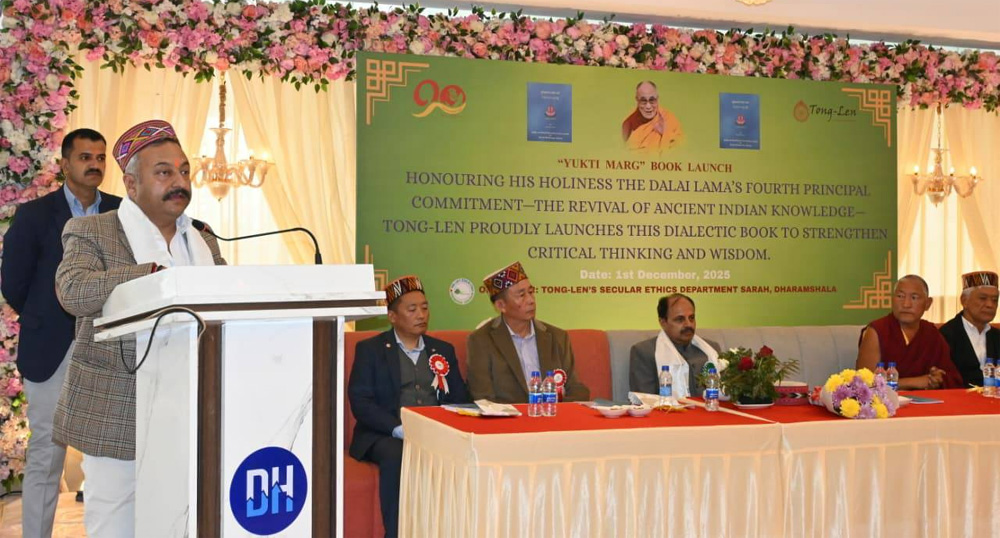 धर्मशाला। शिक्षा मंत्री रोहित ठाकुर ने सोमवार को धौलाधार हाइट्स होटल में आयोजित एक विशेष समारोह में टोंग-लेन चैरिटेबल ट्रस्ट द्वारा संवाद पद्धति (Dialectics) पर आधारित हिंदी अनुवादित पुस्तक 'युक्ति मार्ग' का विमोचन किया।