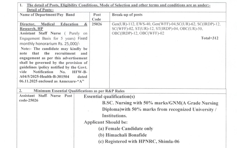 आयोग के सचिव डॉ. विक्रम महाजन ने बताया कि ऑनलाइन आवेदन का वेब लिंक 12 दिसंबर को सुबह 10 बजे से 16 जनवरी 2026 रात 11.59 मिनट तक खुला रहेगा।
