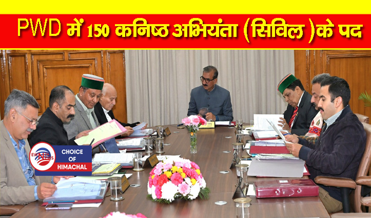जल शक्ति और लोक निर्माण विभाग में 150 कनिष्ठ अभियंता (सिविल) को जॉब ट्रेनी के रूप में भरने का निर्णय लिया गया है।बैठक में डॉ. राधाकृष्णन राजकीय चिकित्सा महाविद्यालय, हमीरपुर में नौ सुपर स्पेशियलिटी विभागों के सृजन एवं 73 पदों (प्रोफेसर, सहायक प्रोफेसर और सीनियर रेजिडेंट) के सृजन और भरने को स्वीकृति दी गई।