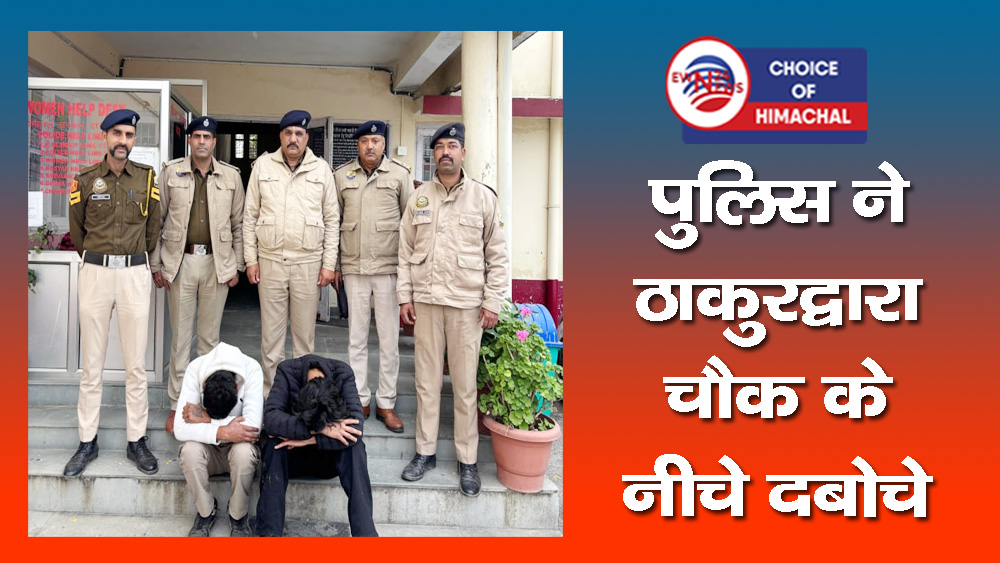 13 दिसंबर, 2025 को जिला कांगड़ा पुलिस की विशेष टीम द्वारा गश्त के दौरान गुप्त सूचना के आधार पर प्रियन राणा (उम्र 21 साल) पुत्र विनोद कुमार निवासी गाँव गदियाडा डाकघर रजेहड तहसील पालमपुर जिला कांगड़ा और आदित्य (उम्र 22 साल) पुत्र चन्द्रहास निवासी गांव जलेहड डाकघर बनूरी तहसील तहसील पालमपुर जिला कांगड़ा के कब्जे से 6.55 ग्राम चिट्टा बरामद करने में सफलता प्राप्त की है।