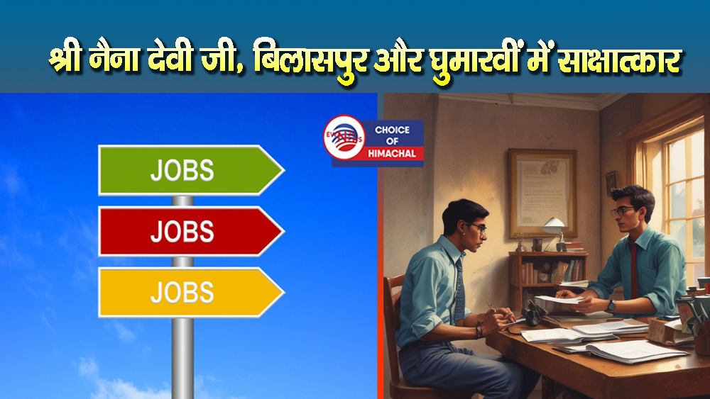 इन पदों के लिए 16 जनवरी को श्री नैना देवी जी में, 19 जनवरी को जिला रोजगार कार्यालय बिलासपुर में तथा 27 जनवरी को उप-रोजगार कार्यालय घुमारवीं में प्रातः 11 बजे से कैंपस इंटरव्यू का आयोजन किया जाएगा।